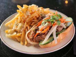 And in tacoma the neighborhood spot turning out pork shoulder tacos, elk sliders and tater tots stuffed.
