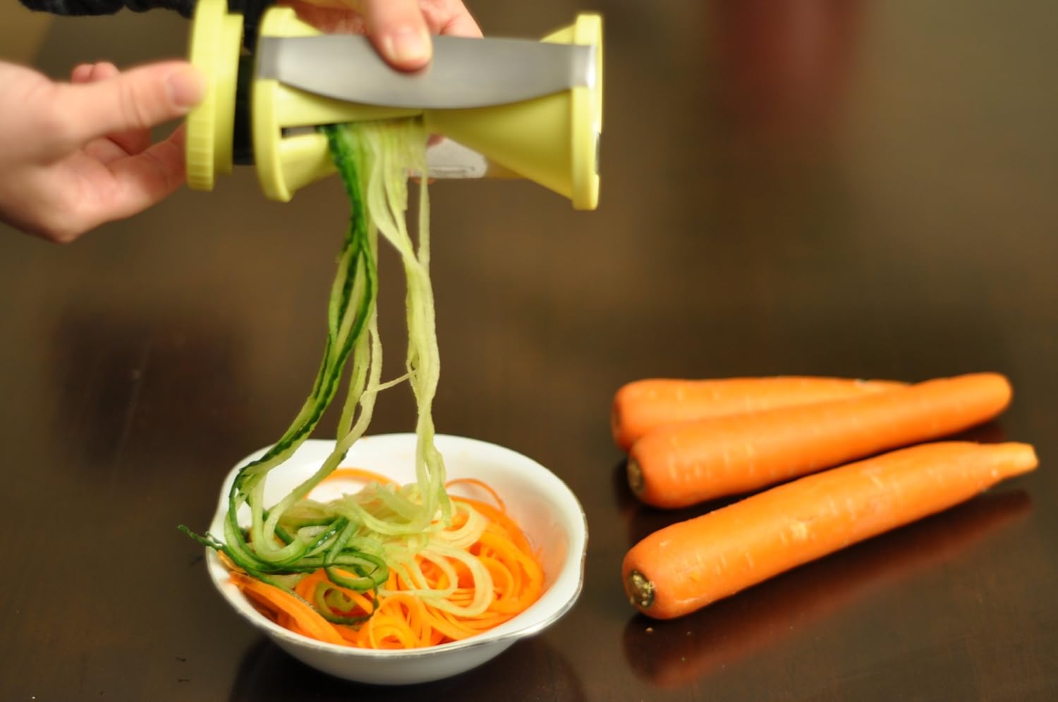 Home » Uncategories » How To Spiral Cut Zucchini By Hand - 3 Blade Hand Spiral Slicer Apple or Zucchini Spaghetti ... : To cut zucchini, first cut off the ends with a sharp chef's knife.